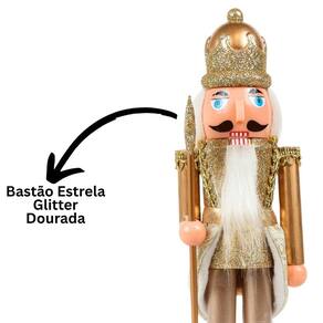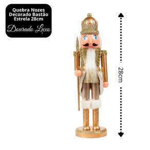 Quebra-Nozes Decorativo Natalino Dourado Luxo com Bastão Estrela – 28cm