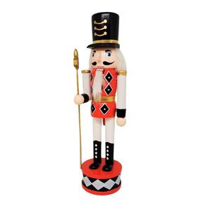 Quebra Nozes Soldado Decorado Madeira Vermelho e Preto 30cm