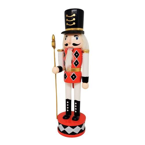 01 Unidade Boneco Quebra-Nozes em Madeira Decorado - Modelo Gala Preto, Branco e Vermelho 30cm
