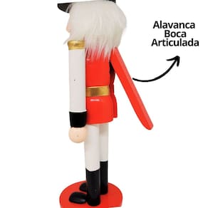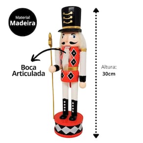 Incorpore elegância e tradição à sua decoração natalina com este boneco quebra-nozes modelo gala! Feito em madeira, ele possui uma combinação sofisticada de cores em preto, branco e vermelho, conferindo um visual clássico e imponente. A peça, com 30 cm de altura, conta com uma boca articulada, característica tradicional dos quebra-nozes.
