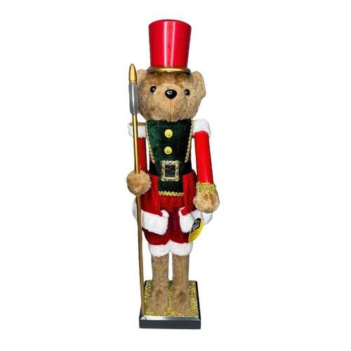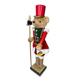 Quebra Nozes Urso Soldado Vermelho 60CM -Wincy Natal O Urso Quebra-Nozes Vermelho em polipropileno e madeira, com 60cm de altura, é uma peça decorativa encantadora e robusta, perfeita para a temporada de Natal. Combinando a leveza do polipropileno com a resistência da madeira, este urso apresenta um design vibrante e festivo. Seu visual é caracterizado por um chapéu estiloso, roupas coloridas em tons de vermelho e detalhes em dourado e preto que conferem um toque de elegância. A expressão amigável do urso, juntamente com os acabamentos cuidadosamente trabalhados, traz um charme especial à decoração. Ideal para ser exibido em mesas, prateleiras ou ao lado da árvore de Natal, esse urso quebra-nozes não apenas adiciona um elemento divertido e lúdico ao ambiente, mas também evoca a tradição natalina, sendo uma peça que certamente encantará visitantes e familiares. INFORMAÇÕES DO PRODUTO MEDIDAS Altura: 60cm Composição: Poliéster / Madeira / Polipropileno