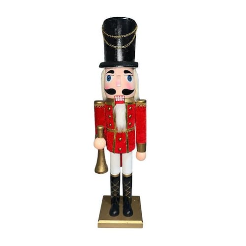Quebra-nozes Vermelho e Dourado com Trombone 50cm - Wincy Natal Adicione charme e tradição à sua decoração natalina com o elegante Quebra-Nozes Vermelho e Dourado com Trombone da Wincy Natal. Com 50 cm de altura, esta peça marcante é confeccionada em materiais de alta qualidade, com acabamento detalhado em pintura brilhante, combinando o clássico vermelho com detalhes dourados que trazem sofisticação e brilho ao ambiente. O destaque vai para o mini trombone dourado em mãos, que remete a cenas clássicas de soldados músicos natalinos, tornando o item ainda mais encantador para compor vitrines, mesas, aparadores ou aos pés da árvore de Natal. Destaques do produto: Altura: 50 cm Largura: 12cm Cores: Vermelho / Dourado Material: Madeira e resina detalhes Acessório: Trombone fixo dourado Ideal para decorações temáticas, ambientes internos ou como peça central