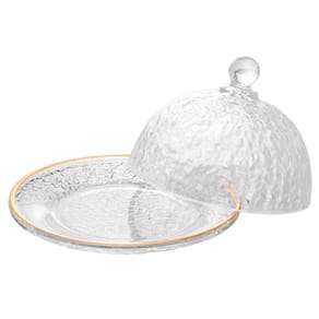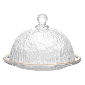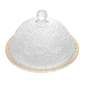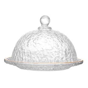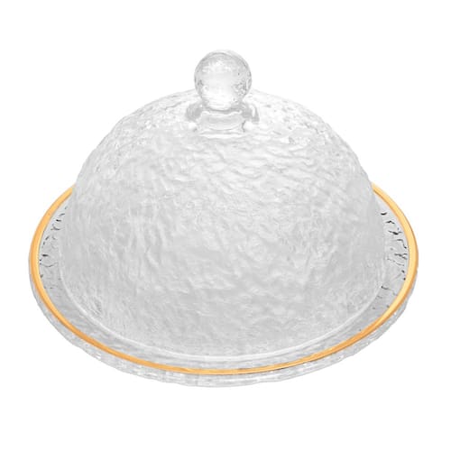 Queijeira de Cristal Martelado com Tampa e Fio de Ouro Petra 19,5cm x 13cm - Lyor