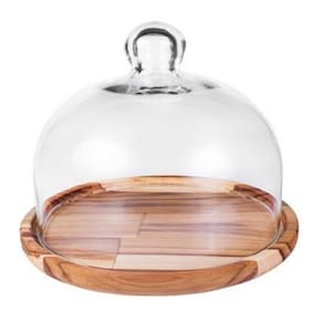 Queijeira redonda em madeira teca com tampa de vidro, prática para armazenar e servir queijos. Com 15,5 cm de diâmetro, mantém os alimentos protegidos e de fácil acesso. O acabamento em cera de abelha valoriza a textura natural da madeira, proporcionando toque suave, enquanto a tampa de vidro permite visualização rápida do conteúdo.