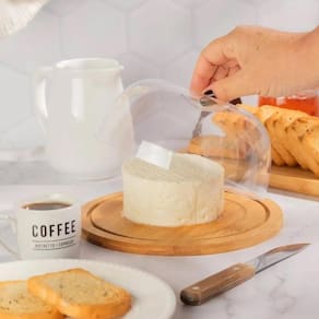 O prato para queijo é utilizado para servir e armazenar queijos de forma fresca e conservada. Também é usada para servir frios, embutidos, canapés e salgados com praticidade e elegância. Feita com base em bambu, material resistente e durável e tampa em plástico acrílico resistente, durável e fácil de limpar, a queijeira é ideal para você manter os queijos e embutidos tapados trazendo conservação e frescura.