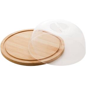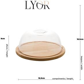 Queijeira Redonda de Bambu com Tampa de Acrílico Porta Bolo 18,5x18,5x8cm Lyor.