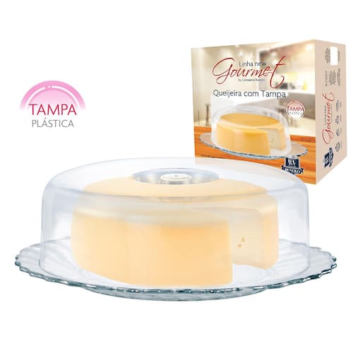 Queijeira de Vidro com tampa Ruvolo. Muito versátil, excelente para guardar seus queijos em geladeira, conservando por muito mais tempo, além de ser muito bonita para servir aquele cafezinho aos familiares e convidados.