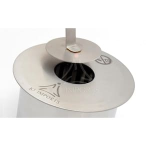 O Queimador a Álcool Redondo 1L K3 Imports é fabricado com chapa de aço inoxidável de acabamento escovado, contendo uma câmara de isolamento total, revestida com manta cerâmica. Ele possui abas laterais em todos os lados para um acabamento por sobreposição, e vem com uma ferramenta para extinguir a chama.