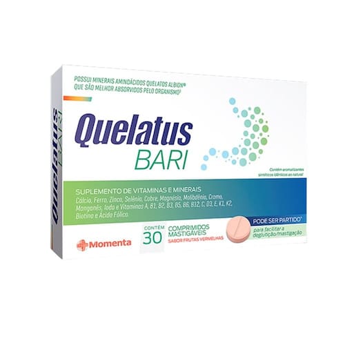 Quelatus Bari Eurofarma é um suplemento vitamínico e mineral desenvolvido para auxiliar na reposição de nutrientes. Sua formulação contém vitaminas e minerais quelatados, que apresentam maior biodisponibilidade, atendendo especialmente às necessidades nutricionais de pessoas que passaram por cirurgia bariátrica ou que necessitam de suplementação diferenciada.