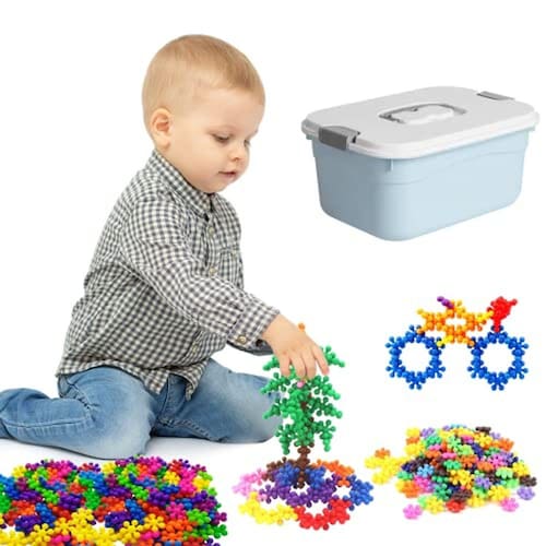 Qzgyoool 400PCS STEM Building Toys for Kids, Interlocking Blocks Preschool Educational Learning Plastic Snowflake Toys for Boys and Girls Aged 3+