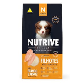 Ração Cães Nutrive Select Filhotes Med/Gd. Fran/Arr 15kg- Indicado para cães;- Promovem crescimento e desenvolvimento saudáveis;- Atua no desenvolvimento cognitivo e na saúde do coração;- Mais saúde e proteção para as articulações;- Auxilia no equilíbrio intestinal;- Fezes mais firmes e com odor reduzido;- Auxilia na força e brilho dos pelos e saúde da pele. Marca: Nutrive