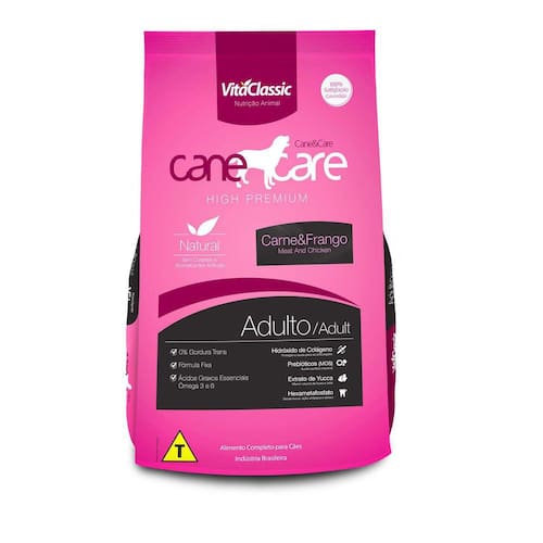 Ração Cane Care para Cães Adultos Sabor Carne - 15KG A linha High Premium Cane & Care é desenvolvida com ingredientes de primeiríssima qualidade, sem corantes ou aromatizantes e zero de gordura trans. Sua fórmula fixa garante a nutrição eficiente no cotidiano do animal e a presença de Zeolita, um dos grandes diferenciais da linha, permite fezes mais firmes, menor volume e menos odor, favorecendo animais que vivem em ambientes internos. Marca: Vitaclassic