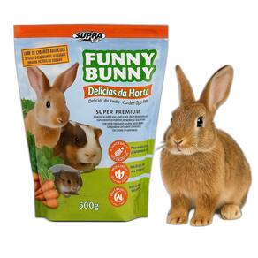 Ração Coelho Funny Bunny 500g Delícias da Horta Premium A Funny Bunny Delícias da Horta 500g é um alimento Super Premium, desenvolvido especialmente para coelhos, porquinhos-da-índia, hamsters e pequenos roedores. Produzida pela Supra Pets, é uma ração completa e balanceada que proporciona nutrição de alta qualidade, auxiliando na saúde, energia e bem-estar dos pets. Com ingredientes naturais e livre de corantes artificiais, esta ração é rica em vitaminas A e C, contém cenoura e alfafa, além de extrato de yucca, que ajuda a reduzir o odor das fezes e contribui para uma digestão mais saudável.