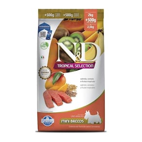 Ração Farmina N&D Tropical Selection Cães Adultos Porte Mini - Indicada para cães;br / - 90% de proteínas de origem animal;br / - 0% de corantes;br / - 0% de aromas artificiais;br / - Com conservantes naturais;br / - Livre de transgênicos;br / - Tecnologia vacuum coater;br / - Feito em atmosfera controlada;br /