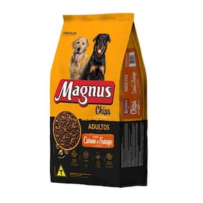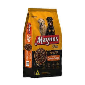Ração Magnus Chips Cães Adultos Carne/Frango - 20Kg - Indicado para cães adultos;- Bio complex;- Sem corantes Artificiais;- Nutritiva e saborosa;- Ômegas 3 e 6 , biotina e zinco orgânico;- Rico em vitaminas e proteínas.A Ração Magnus Premium é um alimento completo para cães adultos, produzida com ingredientes selecionados com vitaminas e proteínas,fornecendo benefícios necessários para o seu cão.Ração rica em ômegas 3 e 6, Biotina e Zinco Quelato que são importantes nutrientes para a manutenção da pelagem sedosa e brilhante.Possui Prebiótico, Fibras e Extrato de Yucca, sendo ingredientes que promovem o equilíbrio da flora intestinal com fezes mais firmes e com menos odor. Além de proteínas de alta qualidade, as Rações Magnus Premium auxilia na limpeza dental dos cães com Hexametafosfato de sódio. IngredientesMilho integral moído, farinha de carne e ossos de bovino, farelo de trigo, farelo de soja, óleo de aves, cloreto de sódio, parede celular de levedura, hidrolisado de fígado de aves e miúdos de suínos, corante caramelo IV, corantes artificiais (vermelho ponceau, amarelo tartrazina), dióxido de titânio, extrato de yucca, vitaminas, minerais, ácido propiônico, BHA (Butilhidroxianisol) e BHT (Butilhidroxitolueno). Eventuais substitutivos: Farelo de arroz, quirera de arroz, gérmen de milho, hidrolisado de miúdos de aves, farinha de carne e ossos de suínos.