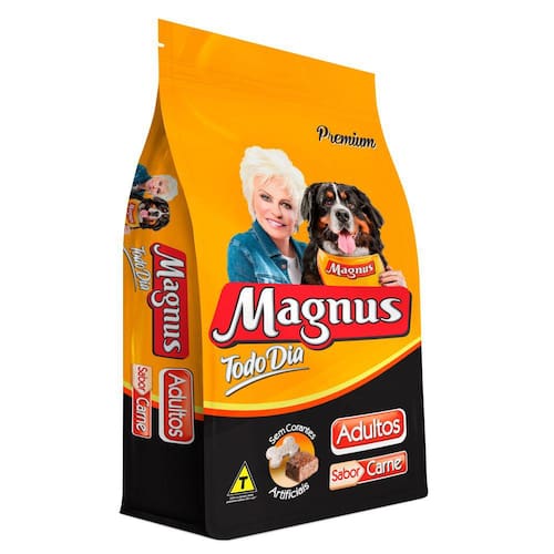 Ração Magnus Premium Cães Adultos Todo Dia Carne - 15kg - Indicado para cães adultos; - Bio Complex; - Sem corantes artificiais; - Nutritivo e saboroso. Magnus Premium Todo Dia Cães Adultos Sabor Carne é um alimento premium completo seco, formulado com precisão para atender as exigências do cão adulto, acima de 12 meses, de qualquer raça, em fase de manutenção. Ômegas 3 e 6, Biotina e Zinco Quelato: Importantes nutrientes para a manutenção da pelagem sedosa e brilhante; Vitamina E e Selênio Quelato: Antioxidantes que atuam no combate aos radicais livres. Prebióticos, Fibras e Extrato de Yucca: A combinação destes ingredientes auxilia no equilíbrio da flora intestinal, ajudando na formação de fezes mais firmes e com menos cheiro; Composição Milho integral moído*, farinha de carne e ossos de bovino, farelo de trigo, farelo de soja**, farinha de vísceras de aves, óleo de vísceras de aves, cloreto de sódio (sal comum), prebióticos (inulina e mos), palatabilizante de vísceras de suíno e frango, corante natural caramelo, extrato de yucca (0,03%), vitaminas (A, D3, E, B1, B2, B12, K3, pantotenato de cálcio, niacina, biotina, cloreto de colina), minerais (sulfato de ferro, sulfato de cobre, iodato de cálcio, óxido de zinco, proteinato de zinco, óxido de manganês, selênio levedura, selenito de sódio), ácido propiônico, BHA, BHT.