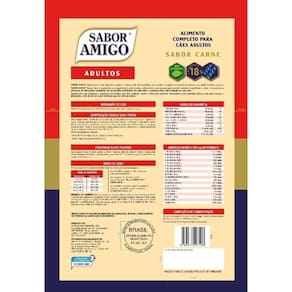 A Ração Sabor Amigo para Cachorro Adulto 18 % de Proteína 15kg. Altamente procurada pelos tutores de cães adultos, ela é um alimento completo, que auxilia na saúde dos animais e garante uma suplementação completa. Ela é desenvolvida com processos técnicos diferenciados e modernos, desde o pré-cozimento, até a extrusão que inibe o desenvolvimento de microorganismos nocivos à saúde. A ração conta com 18% de proteína e garante uma refeição completa para os pets, deixando-os satisfeitos e bem nutridos. Características do produto Animal recomendado: Cão Tamanho da raça: Todos os tamanhos Sabor: Carne Sem Corante Etapa de vida do animal: Adulto Tipo de comida: Seca Características gerais Marca:sabor Amigo Especificações Sabor: Carne Peso da unidade: 15 kg Tipo de embalagem: Saco Tipo de comida para animais: Seca Proteína bruta: 18% É protetor da saúde bucal: Não Animal de estimação recomendado: Cão Etapa de vida do animal: Adulto Tamanho da raça: Todos os tamanhos Outros: Fornecimento de nutrientes 10% Umidade, 8.5% minerais, 2% cálcio, 5% Fibra, Conteúdo calórico 3.480 kcal/kg Marca: Ração Sabor Amigo