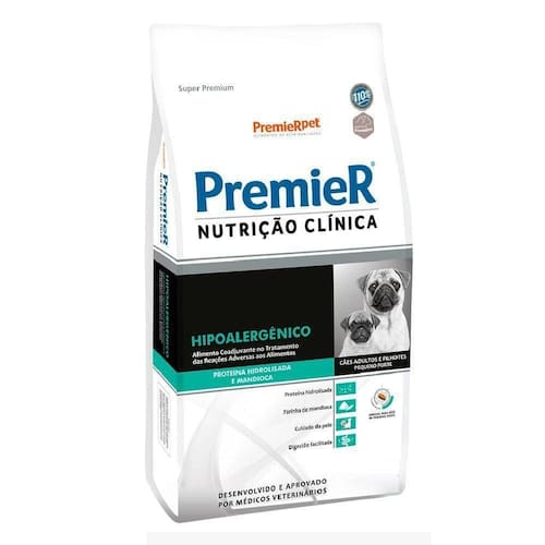 Premier Nutrição Clínica Hipoalergênico Proteína Hidrolisada e Mandioca é um alimento auxiliar para o tratamento de cães adultos e filhotes com reação adversa ao alimento que apresente sintomatologia dermatológica e/ou intestinal.