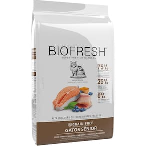 A Ração Seca Biofresh Peixe Branco, Salmão, Chá Verde, Cúrcuma e Blueberry para Gatos Sênior se destaca por elevar a dieta felina ao mais alto nível. É feita através da mistura de carnes frecas com vegetais e frutas nobres, resultando em um alimento grain free, rico em sabor e nutrientes. Com a Tecnologia Biofresh, sua fórmula 100% natural e livre de conservantes artificiais garante maior segurança e bem-estar para o seu pet.