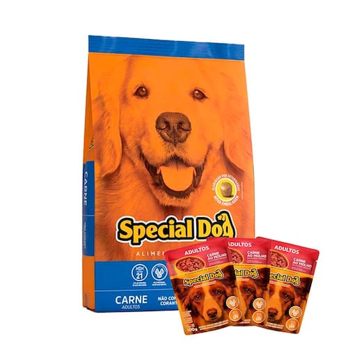 A ração special dog é ideal para cachorros com paladar exigente, formulada com minerais orgânicos. Ela mantem uma alimentação saudável além de dar suporte nutricional ao animal. Possui ômegas mais zinco orgânico para manter a pele protegida e os pelos brilhantes, ela é enriquecida com vitaminas que mantem o bem estar diário do animal muito mais agradável. Contem 21% de proteínas de alta qualidade, mantendo as fezes do animal firmes e saudáveis.