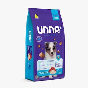 Ração Unna Carne E Arroz Para Cães Filhotes 15KgA Ração Unna para Cães Filhotes sabor Carne e Arroz contém vitaminas essenciais que promove um crescimento saudável para o seu cãozinho, proporciona pelos brilhantes e pele saudável e deixa as fezes mais firmes e com menos odor.Indicação de Uso: Alimento completo indicado para cães filhotes de porte pequeno e médio até 12 meses e porte grande até 18 meses .Composição Básica Qualitativa:Farinha de vísceras de aves, farinha de carne e osso de bovinos, grão de arroz, grão de milho, farelo de glúten de milho 21, farelo de arroz, farelo de soja, feijão bandinha, óleo de aves, grão de linhaça, levedura de cerveja inativada desidratada, hidrolisado de fígado de aves, extrato de yucca 0,010% , zeólita 0,50% , cloreto de sódio sal comum , cloreto de potássio, premix vitamínico mineral vitamina a, vitamina D3, vitamina e, vitamina K3, vitamina B1, vitamina B2, vitamina B6, vitamina B12, niacina, ácido pantotênico, ácido fólico, biotina, sulfato de cobre, sulfato de ferro, iodato de cálcio, sulfato de manganês, selenito de sódio, sulfato de zinco, cobre aminoácido quelato, ferro aminoácido quelato, manganês aminoácido quelato, selênio aminoácido quelato, zinco aminoácido quelato , sorbato de potássio, antioxidantes bha e bht .Espécies doadoras do gene: Bacillus thuringiensis, Streptomyces viridochromogenes, Zea mays, Agrobacterium tumefaciens, Sphingobium herbicidorovans, Diabrotica virgífera, Thermoccocales spp., Escherichia coli, Stenotrophomonas maltophilia, Dicossoma sp., Bacillus substilis.Espécies doadoras do gene: Agrobacterium tumefaciens, Arabidopsis thaliana, Streptomyces viridochromogenes, Bacillus thuringiensis, Pseudomonas fluorescens, Zea mays, Delftia acidovorans, Stenotrophomonas maltophilia, Helianthus anus, s. Higroscopicus, b. T.Enriquecimento:Vitamina A 13.000 ui, vitamina D3 1.200 ui, vitamina E 75 ui, vitamina K3 1,50 mg, vitamina B1 4,50 mg, vitamina B2 12 mg, vitamina B6 3 mg, vitamina B12 67 g, niacina 25 mg, ácido pantotênico 22 mg, ácido fólico 0,40 mg, biotina 0,1 mg, cobre 11 mg, ferro 55 mg, iodo 1,7 mg, manganês 8,7 mg, selênio 0,45 mg, zinco 130 mg.Valores expressos em mínimos por kg do produto.Níveis de Garantia:Umidade Máx. 100 g/kg 10,0% Proteína Bruta Mín. 270 g/kg 27,0% Extrato Etéreo Mín. 120 g/kg 12,0% Matéria Mineral Máx. 80 g/kg 8,00% Matéria Fibrosa Máx. 35 g/kg 3,50% Cálcio Máx. 20 g/kg 2,00% Cálcio Mín. 9.000 mg/kg 0,90% Fósforo Mín. 8.000 mg/kg 0,80% Sódio Mín. 2.000 mg/kg 0,20% Potássio Mín. 6.000 mg/kg 0,60% Ômega 6 Mín. 21 g/kg 2,10% Ômega 3 Mín. 3.000 mg/kg 0,30% epa + dha Mín. 625 mg/kg Zinco Orgânico Mín. 43 mg/kg Energia Metabolizável 3.800 kcal/kgModo de Usar:Siga a tabela abaixo de acordo com o peso do animal para saber a quantidade ideal diária indicada. Fracione o alimento em duas ou mais porções ao dia.Peso do Filhote kg 2 a 5 meses 6 a 9 meses 10 a 12 meses 13 a 18 meses 0,5 a 3 31 a 120 26 a 99 20 a 78 - 4 a 6 149 a 202 123 a 166 97 a 131 - 7 a 9 227 a 273 187 a 226 147 a 178 - 10 a 15 296 a 401 244 a 331 192 a 261 - 16 a 20 421 a 498 347 a 411 274 a 324 - 21 a 25 - 426 a 485 336 a 382 - 26 a 35 - 500 a 625 394 a 492 348 a 435 36 a 50 - - 503 a 643 445 a 569A necessidade energética de seu cão pode variar conforme o porte, raça, linhagem, sexo, temperamento e estilo de vida.