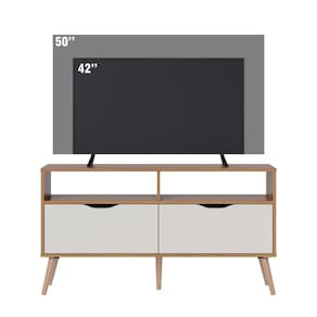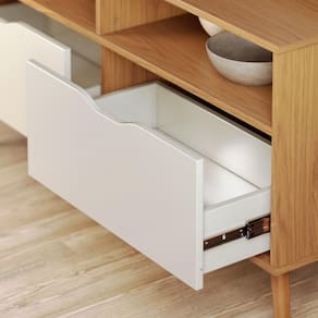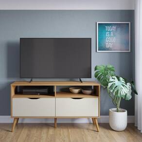 Para quem ama design retrô e minimalista o Rack M-103 supera expectativas quando o assunto é usabilidade, graças as duas gavetas com corrediças telescópicas com deslize suave com puxadores usinados que traz mais harmonia para o design de amplo espaço que deixa o dia a dia e a rotina mais organizada e fácil. Os nichos superiores sem fundo contam com espaço para decorar ou colocar aparelhos eletrônicos sem preocupação com os fios. Os pés que trazem a sustentação para o móvel junto com o sistema anti-tombamento é feito em madeira maciça, de cor natural que remete ao design clean e limpo.