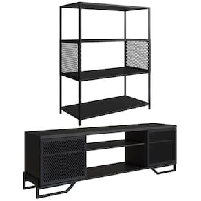 Rack 180 Cm 2 PT Estante 77 Cm Industrial 27X24, design e contemporaneidade para sua sala, acompanhados de qualidade acima de tudo. Estrutura em MDP e metal, sendo o tampo do rack de 30 mm, prateleiras (de ambos) em 15 mm e base de tubo em metal de 20 mm para o rack, que conta também com 02 portas de tela em aço expandido, 02 prateleiras internas e 02 nichos centrais. A estante possui 03 prateleiras, 02 telas laterais e ponteiras plásticas para proteger o piso. O peso suportado pelo rack e pela estante é de 30kg e 40 kg, respectivamente. 02 móveis que em conjunto irão valorizar muito seu ambiente, com sua presença marcante e design em alta. Estes móveis chegarão na sua casa separados em 03 volumes.