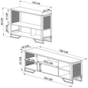 Rack 180 Cm Com Gaveta E Aparador 130 Cm Industrial 17X21, para você que deseja transformar sua sala em um ambiente mais moderno com design e qualidade acima de tudo. Tampos em MDP de 30 mm, prateleiras e gavetas em MDP de 15 mm, bases de tubo em metal de 20 mm. O Rack conta com 05 prateleiras e ampla gaveta de corrediças telescópicas. O Aparador possui 02 prateleiras para seus objetos e decoração, ambos contam com tela de aço expandido nas laterais. O peso suportado por cada um é de 30 Kg distribuídos. 02 móveis que em conjunto irão valorizar muito seu ambiente, com estilo industrial e excelente qualidade. Estes móveis chegarão na sua casa separados em 04 volumes.