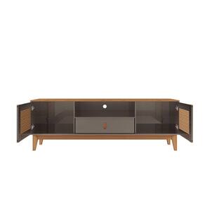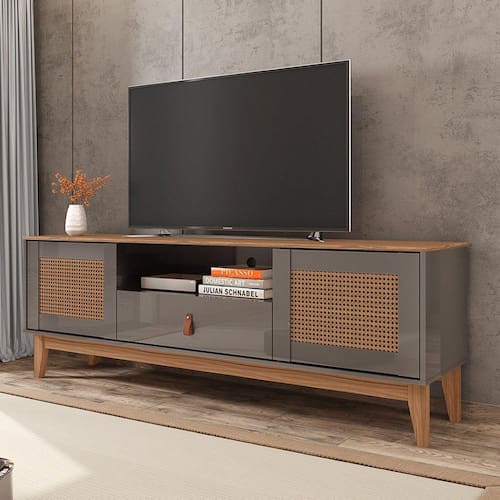 O Rack Esmeralda é a cara da nova geração de racks. Com design vintage que irá encantar você. Seus pés são feitos de madeira maciça garantindo com isso ainda mais qualidade e resistência ao produto. Possui duas portas molduradas com exclusiva pintura 3D palhinha, portas com sistema push-open (fecho-toque). Possui também uma gaveta com amplo espaço interno, e puxador de alça de couro ecológica. Suporta Tvs de até 60 polegadas. O Rack Esmeralda é um produto completo, contempla beleza, praticidade, qualidade e segurança. Produto Montado: Sim Acabamento: Pintura UV Acabamento da Gaveta: Pintura UV Acabamento da Porta: Pintura UV Acabamento dos Pés: Verniz Altura dos Pés: 18 cm Altura Máxima dos Pés: 18.0000 Ambiente Principal: Sala de Estar codigo_ean: 7908506276802 Complexidade da Montagem: Baixa: pode ser montado por uma pessoa sozinha Cor: Cinza Perola/Noce Cor do Produto: Cinza Perola/Noce Escala de Brilho: Semi-Brilho Escala de Brilho da Gaveta: Semi-Brilho Escala de Brilho da Porta: Semi-Brilho Gaveta com Chave: Não Ideal para TVs até (Polegadas): 60 Informações Complementares: Puxador de alça de couro ecológico Itens Inclusos: 1 Rack, Kit Ferragens e Manual de Montagem Linha ou Coleção: Versátile 2022 Manual de Montagem e Instalação: https://product-hub-prd.madeiramadeira.com.br/704314/documents/8fc30c78-d167-4df4-aed9-0013bd30f4026rackesmeralda160404391000.pdf Material da Gaveta: MDF/MDP Material da Porta: MDF/MDP Material do Puxador da Gaveta: Couro Material dos Pés: Madeira Maciça Material Principal: MDF/MDP Necessita Montagem: Sim Origem do Produto: Nacional Peso: 26,7 kg Peso Máximo por Gaveta: 5 kg Possui Espelho: Não Possui iluminação: Não Possui Pés: 04 Possui Portas: Sim Possui Prateleiras: Não Possui Vidro: Não Quantidade de Gavetas: 01 Gaveta Recomendações de Uso, Manutenção e Limpeza: Recomenda-se limpar o produto com flanela ou pano macio seco, não utilizar produtos abrasivos, desengordurantes, álcool ou solvente. Mantê-lo em lugar livre de umidade e/ou exposição direta ao sol. Sapatas Niveladoras: Não Sistema de Montagem: Parafusos, Minifix, Cavilhas e Pregos Tipo de Corrediça da Gaveta: Metálica Telescópica Tipo de Dobradiça/Corrediça da Porta: Alumínio Tipo de Madeira Maciça dos Pés: Pinus Tipo de Puxador da Gaveta: Externo Tipo de Puxador da Porta: Embutido