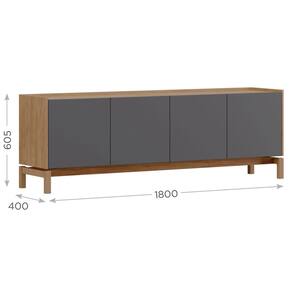 O Rack da Linha Barcelona tem a estrutura toda em madeira maciça e a frente de gaveta e portas em MDF.