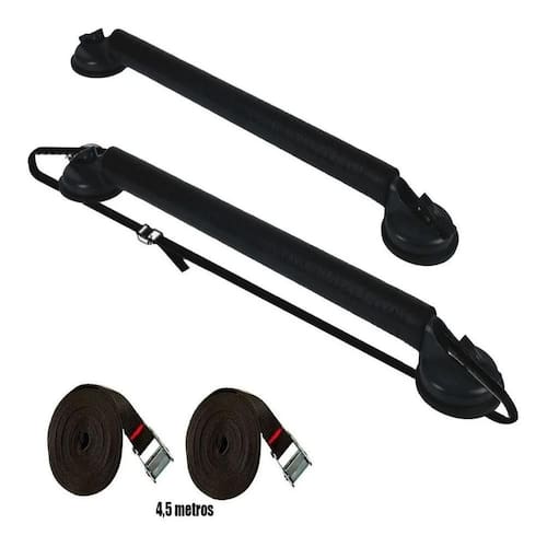 produto resistente e prático, de fácil instalação, com articulação que não danifica ou força o teto, nem a pintura do seu carro. Vem com fita de segurança, garantindo total segurança e tranquilidade em suas viagens. Ideal para o transporte eventual ou diário dos mais diversos produtos como pranchas, caiaques, standup, escadas, varas de pesca e outros. O rack suporta 40kg de carga mas para não danificar o teto do seu carro é recomendado 25kg para o transporte. Os racks de ventosa da santo rack permitem que você carregue seus objetos com maior facilidade e mais segurança e pode ser ajustado conforme a carga