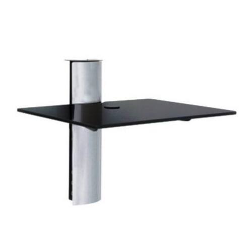 Coluna em aço cor Black com pintura eletrostática, Painel de Fechamento cor Black. Prateleiras com suporte em aço e vidro temperado de 8 mm