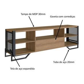 Rack Industrial telado com acabamento profissional é o móvel que falta para deixar seu espaço ainda mais bonito. Suporta televisões de até 60 polegadas, com duas portas vazadas em metal, uma ampla gaveta e prateleiras para guardar suas decorações, jogos ou livros.