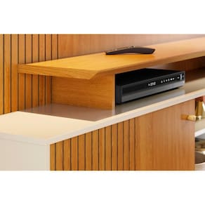 O Home Theater Ares, da marca Madetec, é ideal para TVs de até 75 polegadas. Produzido em MDP e MDF com revestimento em pintura UV, conta com 1 porta deslizante em MDF frisado, 2 prateleiras e puxador dourado pontual.