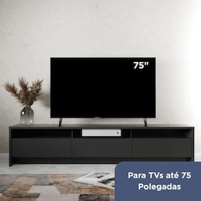 Compatível com TVs de até 75 Tampo resistente e espaçoso, ideal para sua TV e itens decorativos.