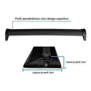 Ficha técnica: Fabricante: cristalcar Material: barras aerodinâmicas em alumínio Medidas do perfil barras : 9cm largura x 3cm de altura Capacidade de carga: 35kg distribuidos prevalecer a capacidade de carga do teto do veiculo, veja no manual