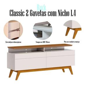 Rack Bancada 2 Gavetas com Nicho e Painel para Tv Classic 1.4 Off White Freijó - Imcal