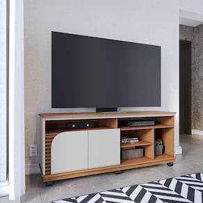 A Bancada Jurerê é uma peça contemporânea e elegante, destacando-se pelos apliques ripados decorativos e pela porta de quina assimétrica usinada. Seu tampo de 25mm com detalhes suspensos adiciona sofisticação, enquanto o nicho espaçoso com duas portas de giro oferece praticidade para aparelhos e decorações. Com amplo espaço para TVs de até 65 polegadas e 6 rodízios inclusos para versatilidade, a Bancada Jurerê é a escolha perfeita para transformar seu ambiente com estilo e funcionalidade. Produto Montado: Sim Acabamento: Pintura UV Acabamento da Porta: Pintura UV Acabamento da Prateleira: Pintura UV Ambiente Principal: Sala de Estar codigo_ean: 7909903533277 Complexidade da Montagem: Média: pode ser montado por mais de uma pessoa e/ou necessite de maior conhecimento para montagem Cor: Freijó / Off White Matte Cor do Produto: Freijó / Off White Matte Escala de Brilho: Fosco Escala de Brilho da Porta: Fosco Escala de Brilho da Prateleira: Fosco Ideal para TVs até (Polegadas): 65 Informações Complementares: Suporta até 30 Kg no tampo da bancada. Itens Inclusos: 1 Rack, Kit Ferragens e Manual de Montagem Manual de Especificação Técnica: https://product-hub-prd.madeiramadeira.com.br/877794/documents/5459f436-aaf8-44cc-846b-7e36b0dc04451642480croqui1887.pdf Manual de Montagem e Instalação: https://product-hub-prd.madeiramadeira.com.br/877794/documents/9db483b9-a6ab-4f2f-bb94-6e40ed3ff9ae1642479manual1887.pdf Material da Porta: MDP Material da Prateleira: MDP Material Principal: MDP Necessita Montagem: Sim Origem do Produto: Nacional Peso: 32,8 kg Peso Máximo por Prateleira: 2 kg Possui Espelho: Não Possui iluminação: Não Possui Pés: Não Recomendações de Uso, Manutenção e Limpeza: Limpar utilizando apenas pano umedecido com água, nunca utilizar abrasivos ou esponjas de aço. Rodízio com Trava: Sim Sistema de Montagem: Cavilhas, Parafusos e Cola Tipo de Porta: Bater Tipo de Puxador da Porta: Embutido