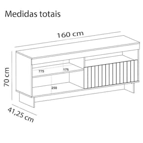 Peso máximo suportado: 47 Kg (35 kg no tampo, 2 kg em cada nicho vazado e 4 kg nos nichos fechados)