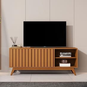 Comporta TVs de até 60?, possui 2 portas, 1 prateleira e 2 nichos para organização prática e moderna.