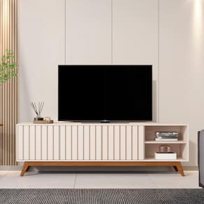 Feita em MDF ripado, com design moderno e pés resistentes, acomoda TVs de até 75.