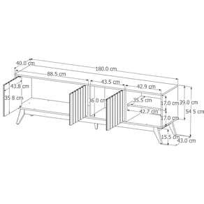 Dimensões: 180 cm(L) x 54,5 cm(A) x 43 cm(P);