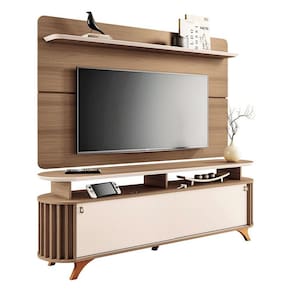 Rack Bancada Alba com Painel Curv Castanho Off White - HB