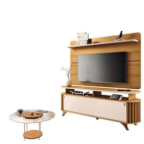Rack Bancada Alba com Painel Curv com Mesa de Centro Sky Cinamomo Off White HB Móveis