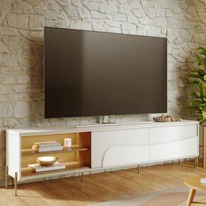movimento e sofisticação, enquanto o nicho com LED valoriza seus objetos favoritos. Com tampo duplo e base reforçada, oferece resistência e presença marcante. Os pés