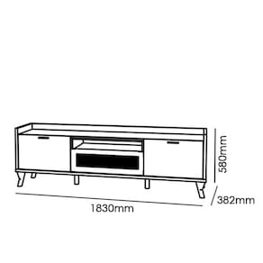 ESPECIFICAÇÕES: • Estrutura em MDP e MDF • Pintura UV • Furação para passagem de fios • Portas basculantes • Pistão à gás • Porta central usinada • Detalhe com tela sintética • Dobradiças metálicas • Puxadores de alumínio • Espaço para eletrônicos e decorações • Pés usinados