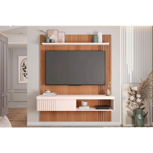 Tipo de Porta - Portas de Correr Diferenciais das Portas - Portas Ripadas Quantidade de Portas - 1 Porta de Correr Tipo de Puxador - Madeira Material das Prateleiras - Prateleira Madeirada Quantidade de Prateleiras - 1 Prateleira Quantidade de nichos - 1 Nicho Ideal para TVs até (Polegadas) - 55