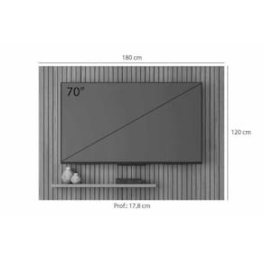 Dimensões(Cm): Comprimento(Profundidade): 15,1cm x Largura: 180cm x Altura: 120cm Material de Estrutura - Estrutura 100% MDP Estilo do Móvel - Estilo Ripado Tipo de Pintura - UV Tipo de Acabamento da Pintura - Fosco Tipo de Acabamento - Acabamento Ripado Alto Padrão Material das Prateleiras - Prateleira Madeirada Quantidade de Prateleiras - 1 Prateleira Ideal para TVs até (Polegadas) - 70 Recomendações de Uso - Instruções de Cuidado Montagem do Produto - Desmontável - Necessita de Montagem - Necessita de Ferramentas para Realizar a Montagem - Complexidade da Montagem Média Sistema de Montagem - Inclui kit de instalação - Acompanha Manual de Instalação e Montagem Nossa Avaliação - Qualidade Boa Certificação de Qualidade - Qualidade Aprovada Garantia - 3 meses