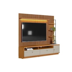 Home p/ TV até 75 Pol Ouro Preto Ripado c/ 2Gav. 1Pta. 3 Prat. e Leds 224x198cm Nature/Off White - Linea Brasil
