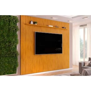 Painel Home p/ TV até 85 Pol Pratic Ripado c/ 1 Prateleira 275x240cm Cedro - DJ Móveis